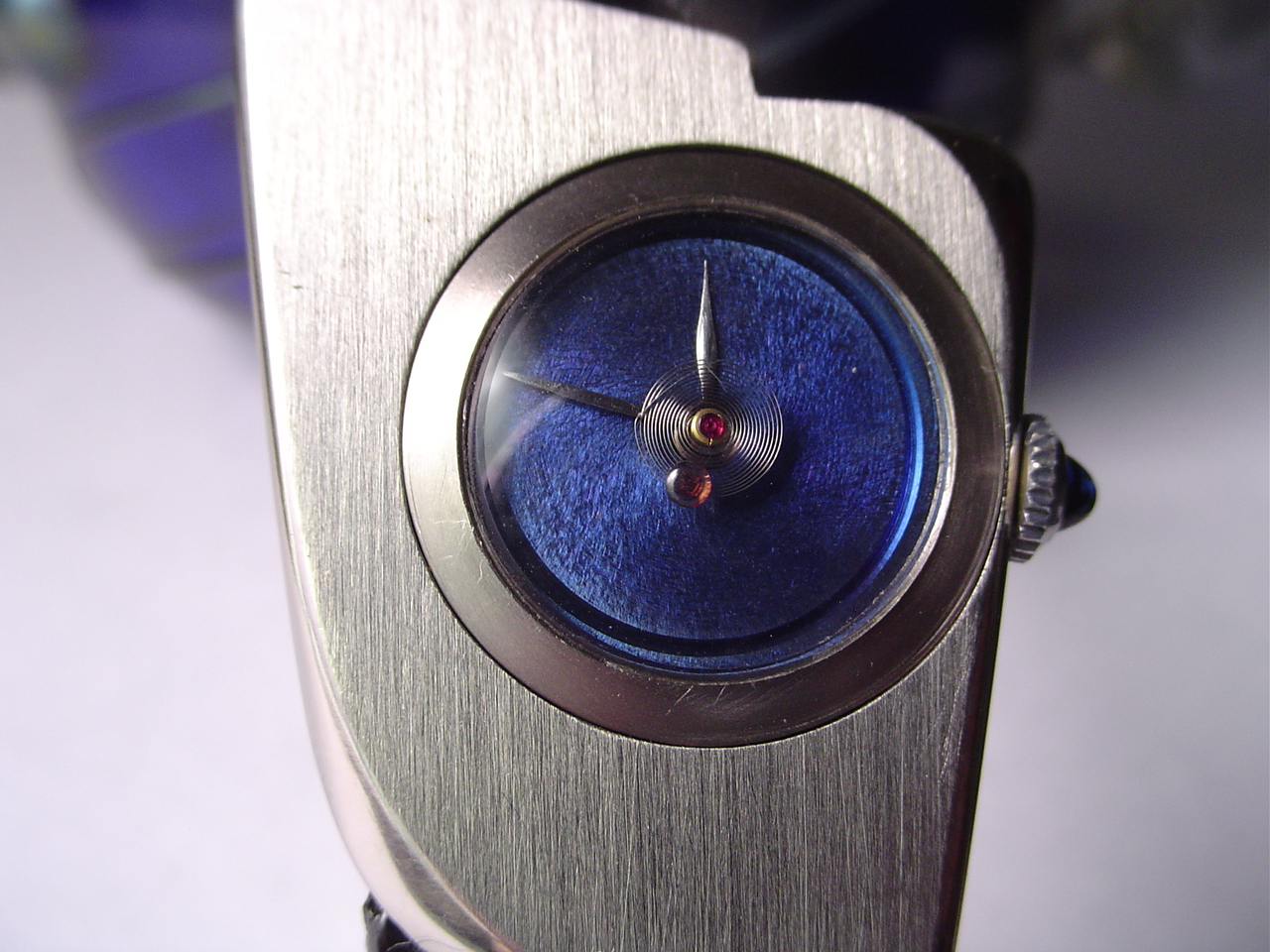 This a twisted look at a second hand for a watch. While not totally a new idea it does have some things I have not seen on a watch yet so I have them on my "banged up beater test watch" as I call it to try them out. The ruby end stones are a nice touch and I have to say that an overcoil always seems to make things work nice inside the watch so why not on the dial too ?